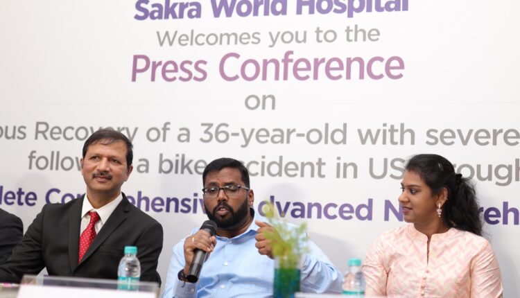 January 18, 2023: Not all hopes die if you know the way out and believe in miracles. When 36-year-old Mr. Pravin Raj Radha met with a fatal accident in the US after he fell from his bicycle in May 2022, he suffered severe brain, facial and eye injuries which resulted in leaving him at a comatose state and losing all hopes of his survival. His condition was treated immediately in one of the top hospitals in the US, undergoing intensive care where the US doctors estimated less than 1% chance of survival. Pravin shared his story of getting a new lease of life today at a press conference in the presence of Mr Yuchi Nagao, MD at Sakra World Hospital, Mr Naoya Matsumi, DMD at Sakra World Hospital and Mr Lovekesh Phasu, COO at Sakra World Hospital, and Dr Maheshwarappa B M, Head and Senior Consultant for Neuro Rehabilitation at Sakra World Hospital as well as Pravin’s treating doctor in India.