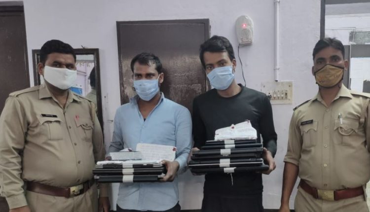 नोएडा जोन के एडीसीपी रणविजय सिंह ने अधिकारिक बयान में बताया कि शुक्रवार को सेक्टर 20 थाना पुलिस सेक्टर 8 में गश्त कर रही थी। इसी दौरान पुलिस ने बाइक सवार दो संदिग्ध युवकों को रोक कर तलाशी ली तो उनके पास से ₹23000, लूट का मोबाइल, 9 लैपटॉप, लूटा गया मोबाइल, चोरी की बाइक और दो चाकू बरामद हुए हैं।
