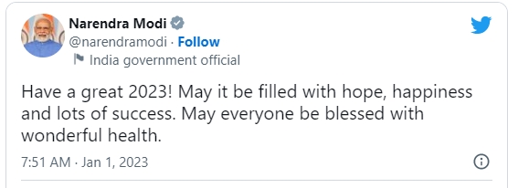 New Delhi (01/01/2023): The Prime Minister, Narendra Modi has extended his New Year greetings to the nation.
