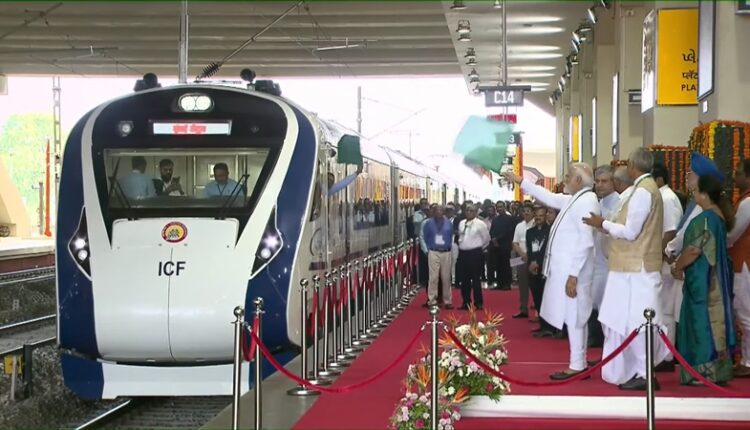 Gujarat (30/09/2022): The Prime Minister, Narendra Modi flagged off Gandhinagar- Mumbai Vande Bharat Express at Gandhinagar station and travelled on the train from there to Kalupur Railway Station today.