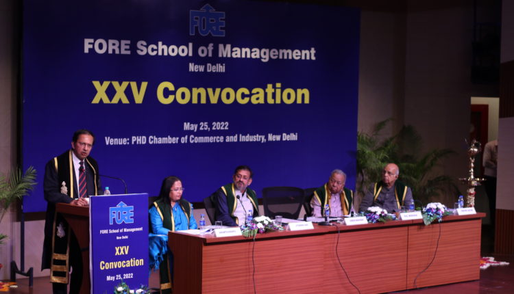 FORE School of Management (FSM), New Delhi, held the XXV Convocation on Wednesday, May 25, 2022. The event was graced by Mr. Suresh Narayanan, Chairman and Managing Director at Nestlé India Limited, New Delhi.