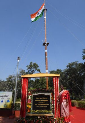 The President inaugurated a 120-feet flag post, a replica of the historic flag post, by hoisting the national flag.