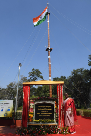 Hyderabad, Dec 21 (IANS) President Droupadi Murmu on Thursday inaugurated a replica of the historic flag post at Rashtrapati Nilayam in Secunderabad here.