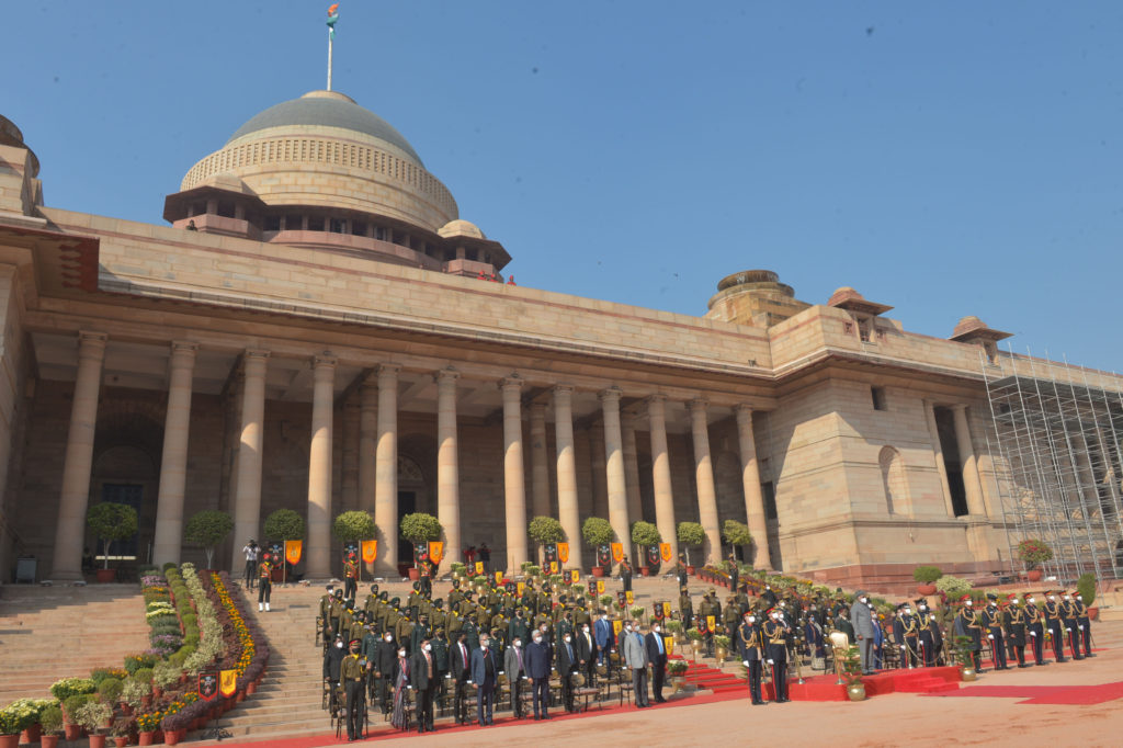 The President of India, Shri Ram Nath Kovind, witnessed the Ceremonial change-over of the Army Guard Battalion stationed at Rashtrapati Bhavan today (November 28, 2020) wherein the 5th Battalion of the 1st Gorkha Rifles, on completion of its three and half years tenure as Ceremonial Army Guard Battalion, handed over the charge to the 6th Battalion of the Sikh Regiment.