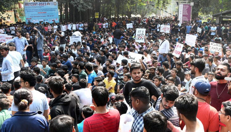 Thousands of students gathered in protest at the institute director’s office on Thursday, demanding better security arrangements on the campus.