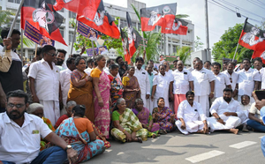 AIADMK workers and functionaries, led by Puducherry unit secretary A. Anbalagan, gathered near the district collectorate and raised slogans against the Sri Lankan government, condemning its use of force against Tamil fishermen.