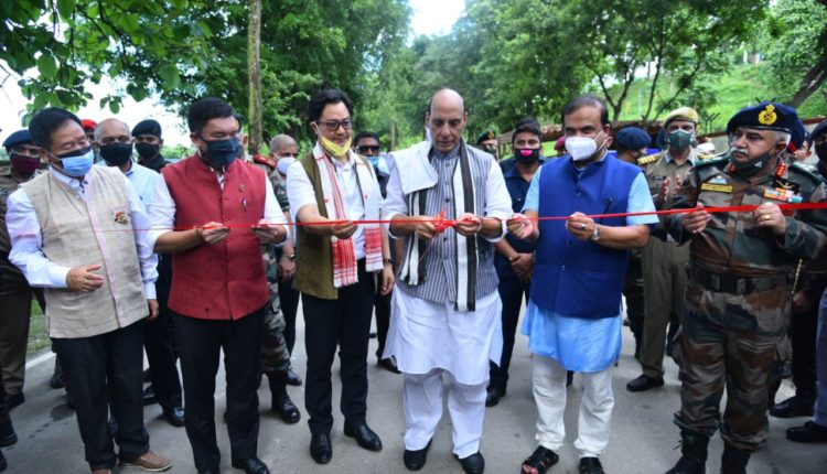 Raksha Mantri Rajnath Singh dedicated to the nation 12 roads, built by Border Roads Organisation (BRO) in the Northern and Eastern border areas on June 17, 2021, in the presence of Chief Minister of Assam Dr Himanta Biswa Sarma, Chief Minister of Arunachal Pradesh Pema Khandu, Union Minister of State (Independent Charge) for Youth Affairs & Sports, Minority Affairs and AYUSH (Independent Charge) Kiren Rijiju and Chief of Defence Staff General Bipin Rawat. Minister of State (Independent Charge) for Development of North Eastern Region & Minister of State, PMO, Dr Jitendra Singh was among the dignitaries who attended the event virtually.