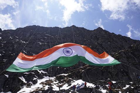 The National Flag, measuring 7,500 sq ft and weighing 75 kilograms, was hoisted atop Mt Rhenock at an altitude of 16,500 ft above sea level. The point where the National Flag was hoisted has been named after first freedom fighter from Sikkim, Trilochan Pokhrel, fondly remembered as Gandhi Pokhrel. The feat was recorded as the biggest Indian National Flag hoisted atop a mountain in the Asia Book of Records and India Book of Records. The team also performed a world record 75-hour nonstop Surya Namaskar 2.51 lakh times at HMI, Darjeeling.