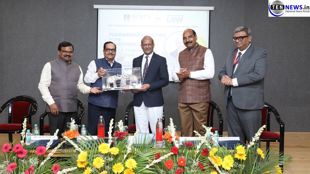 Greater Noida (18 July 2025): Sharda University’s School of Law hosted the 1st Anand Swaroop Gupta Memorial Law Lecture Series, marking a significant academic milestone with the presence of Justice Rajesh Bindal, Judge of the Supreme Court of India, as the Chief Guest. The event, held at the university’s campus in Knowledge Park, Greater Noida, focused on the theme “Fundamental Duties in the Constitution: A Step Towards a Responsible Citizen.”