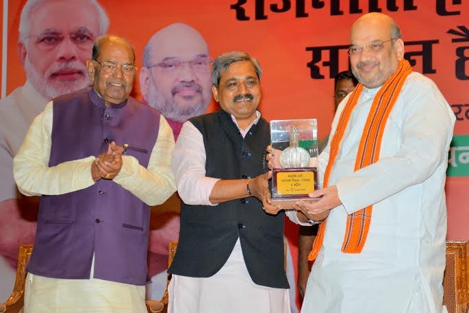 Shri Amit Shah addressing a public programme on the occasion of BJP Foundation day at Mavalankar Hall, New Delhi.