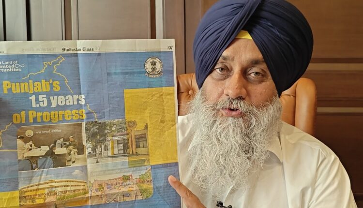 Sukhbir slams Punjab CM for ‘wasting’ Rs 25 crore on advertisements