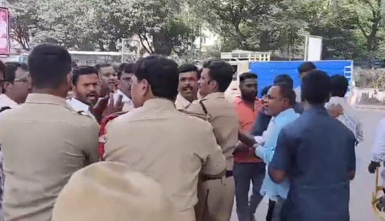 Police detained the protestors and whisked them away.Later, senior party leader and former deputy chief minister Damodar Rajanarasimha spoke to the protestors over phone and pacified them.