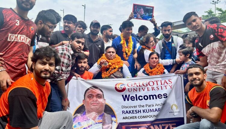 Triumphant Homecoming for Galgotias University Alumnus Rakesh Kumar and Fellow Athlete Sarita Devi after Paris 2024 Success