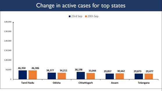 73% of the new recovered cases are being reported from ten States, viz. Maharashtra, Karnataka Andhra Pradesh, Tamil Nadu, Uttar Pradesh, Delhi, Odisha, Kerala, West Bengal and Madhya Pradesh.