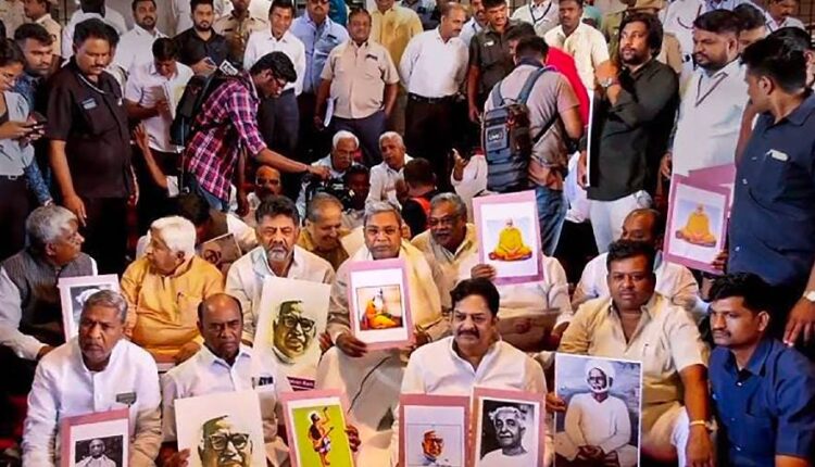 The protest was spearheaded by former chief minister and Congress leader Siddaramaiah, as per news reports. On Monday, the first day of 10-day winter session of the state assembly commenced.