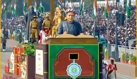 Kolkata, Jan 26 (IANS) At the Republic Day parade in the national Capital, West Bengal’s tableau rolled down the Kartavya Path showcasing Bankim Chandra Chatterjee and his landmark composition ‘Vande Mataram’. The tableau was made in line with the 77th Republic Day Parade’s overarching theme celebrating 150 years of the national song. The subject for the state’s tableau was ‘Bengal in the Freedom Movement of India’.