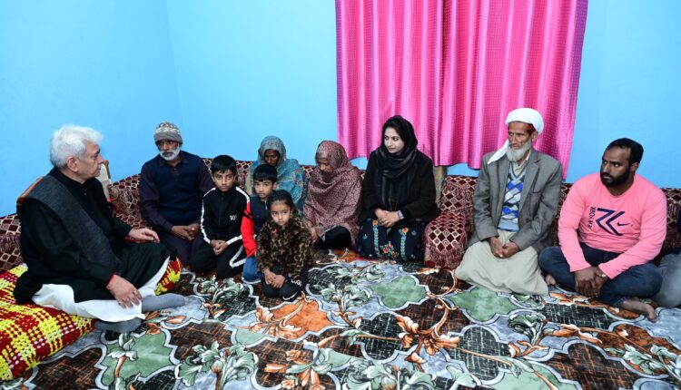 Lt governor on Saturday visited the family members of Havaldar Abdul Majid, one of the five Army personnel who was martyred during an anti-terror operation in Rajouri.