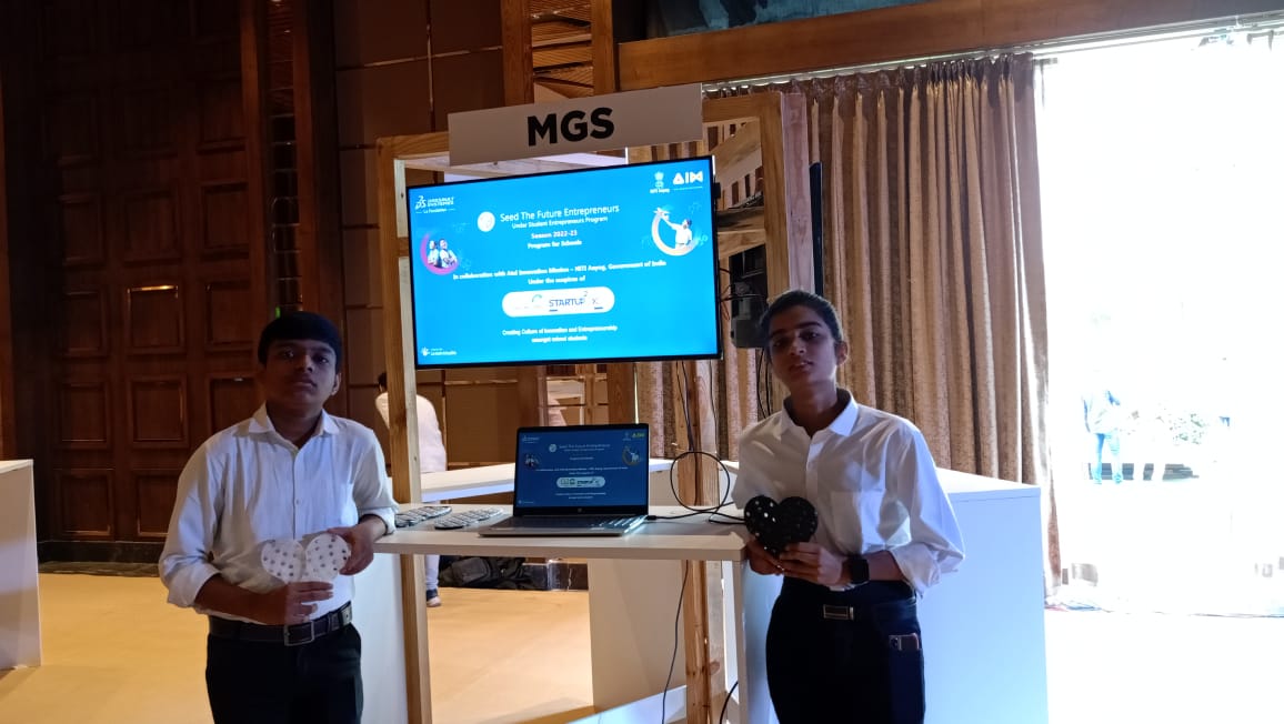 First place was awarded to MGS, a student startup from Swami Atmanand Government Multipurpose Higher Secondary Utkrishta Hindi Medium School, Bilaspur, Chhattisgarh, India. The team invented Foot Relaxo Shoes that work on the principle of acupuncture. The product leverages the spinal points on the base of the foot as it applies pressure to these points using