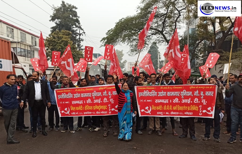 मजदुर संगठनों का भारत बंद आज सुबह से ही शुरू हो गया, जिसको लेकर नोएडा में भी जगह-जगह मजदूर संगठनों द्वारा जुलूस प्रदर्शन के जरिए अपनी मांगों को रखा गया।