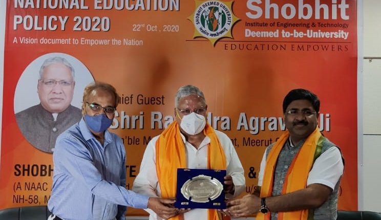 आज शोभित विश्वविद्यालय में राष्ट्र को सशक्त बनाने वाली, राष्ट्रीय शिक्षा नीति- 2020 पर शोभित विश्वविद्यालय के कुलाधिपति कुंवर शेखर विजेंद्र की अध्यक्षता में सेमिनार का आयोजन किया गया। जिसमें मुख्य अतिथि मेरठ के सांसद राजेंद्र अग्रवाल जी रहे। सेमिनार की शुरुआत मां सरस्वती के समक्ष दीप प्रज्वलित कर की गई। तत्पश्चात कुलाधिपति कुंवर शेखर विजेंद्र द्वारा तुलसी का पौधा बैठकर सांसद का स्वागत किया गया।